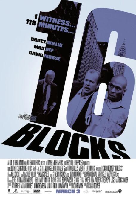 讲述了:纽约平淡的一天,临近退休的老警探杰克•莫斯利(布鲁斯•威利斯 Bruce Willis 饰)却接到了一个吃力不讨好的任务:穿行16片街区,护送一名犯人上法庭作证。这本该是件极其轻松的事,从警局到法庭的车程只有15分钟,唯一的麻烦看上去也只是罪犯艾迪(茅斯•达夫 Mos Def 饰)滔滔不绝的废话而已。然而事实却远不止于此,一次针对艾迪的暗杀行动让杰克发现了幕后的真相:所谓的上庭作证不过是个幌子,真实的情况是以警局同僚、老朋友弗兰克(大卫•摩斯 David Morse饰)为首的一批腐败警察,借杰克护送艾迪的机会铲除污点证人。经历内心的挣扎后,杰克为了寻求心中的正义保护了艾迪,却成了纽约警局的众矢之的。16片街区的距离,从来也不曾如此漫长过…